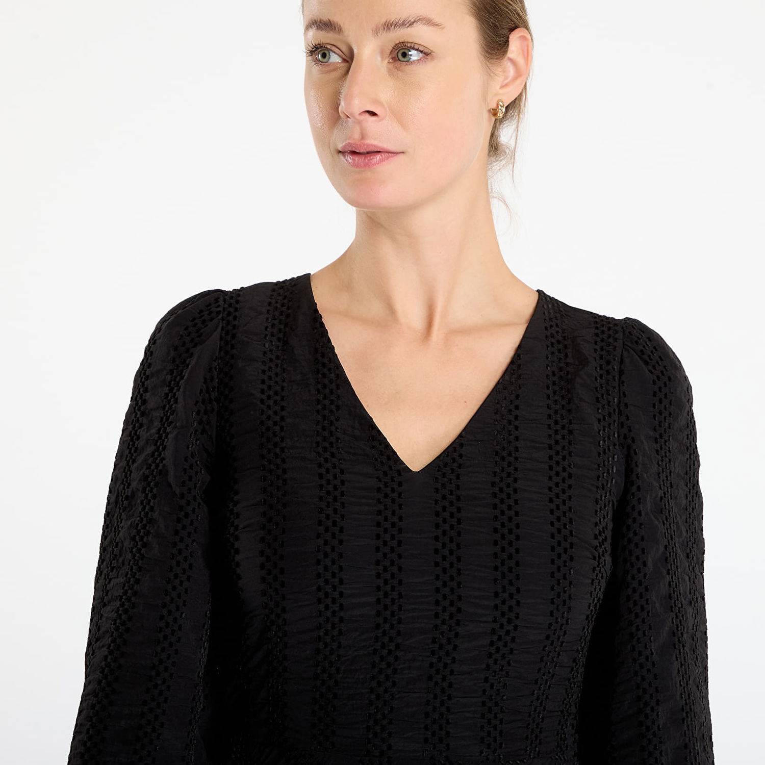 Textured V-Neck Puffed Sleeve Salahai Dress